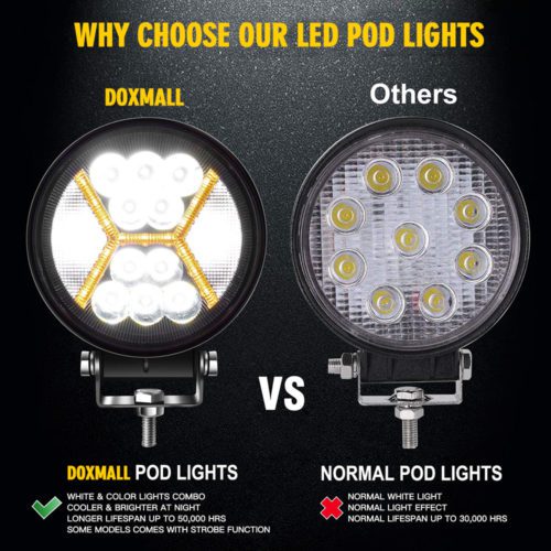 - Effective Oversized Heat System – This round led pod lights with15PCS Die-cast thick housing design, effective reducing wind resistance, faster heat disspation, make it more durable and longer service-life.