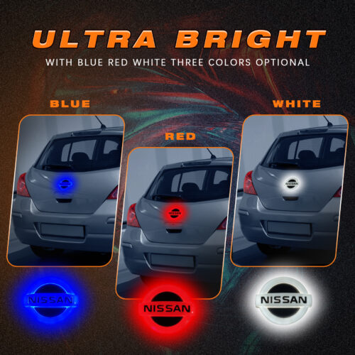 [Exudes Charm] 5D LED brand badge for Nissan logo. The Nissan logo has three different light colors: red, blue and white, which not only increases the charm of Nissan cars, but also complements your Nissan car.