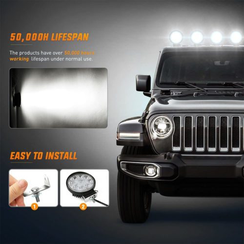 [IP68 Waterproof]: With IP68 Waterproof, our led work light can keep good performance even in the extreme weather, such as rain, snow, dust, etc. It can keep working at -40~+85 Degrees Celsius Working Temperature.