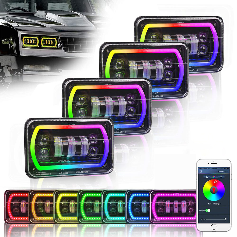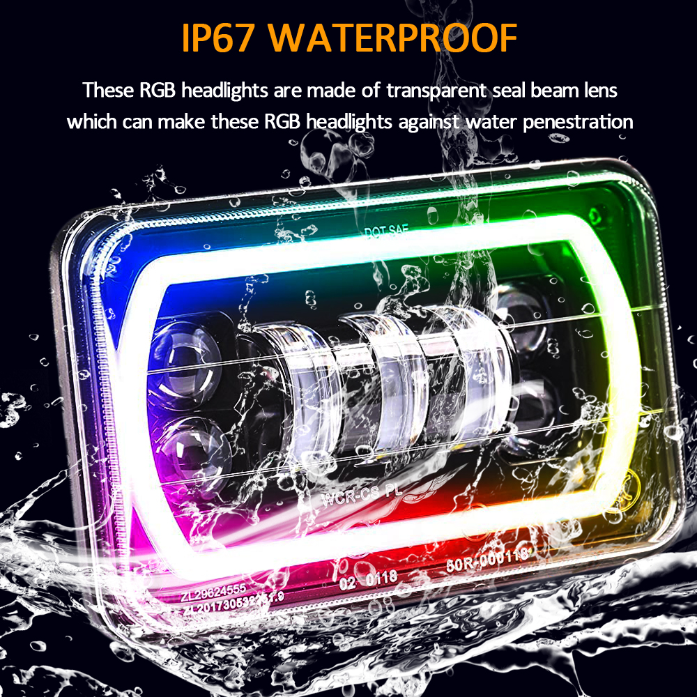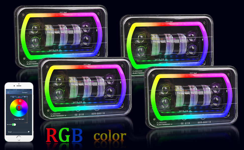 - Super bright 4×6 inch led headlights with RGB halo: 4500lm@High beam, 3000lm@ Low beam, give you broad view to make you far away from hidden danger in the dark; Helps to reduce traffic accidents cause by bad weather or adverse road condition.Search the ‘OL-blelight’ in the App store to download this APP and connect the device via bluetooth.